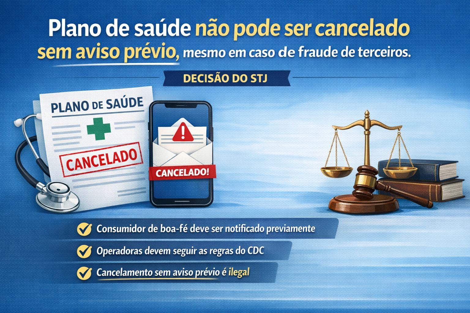 No caso analisado, o STJ determinou que o plano de saúde fosse mantido até a rescisão formal, após a devida comunicação ao consumidor.